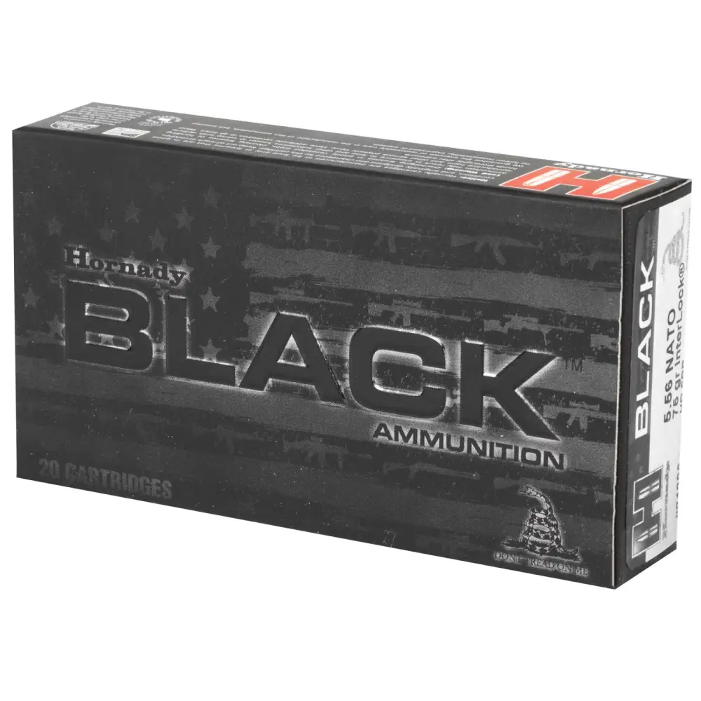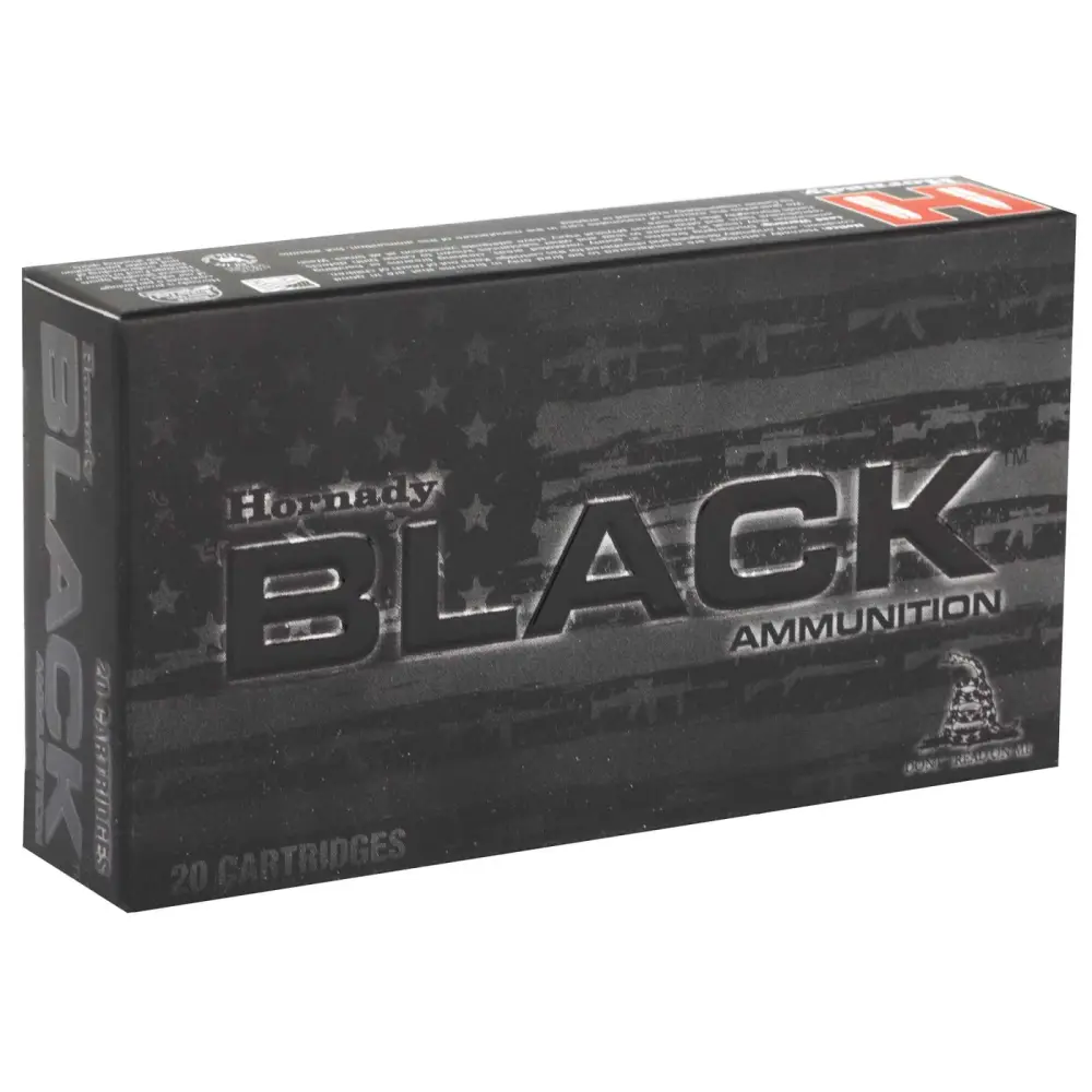 Hornady Black ammunition features versatile loads optimized for excellent performance from America's favorite guns. Hornady Black ammunition is designed to fit, feed, and function in a variety of platforms: direct impingement, gas piston, suppressed, unsuppressed, inertia, bolt, pump, supersonic, subsonic, rifle, mid-length, carbine, or pistol. Hornady Black ammunition delivers superior performance for a variety of applications. Made in the USA.