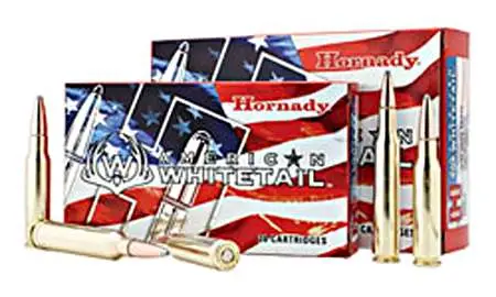 Opening day of deer season comes only once a year. Make sure you're ready when the big one steps out and load-up with Hornady American Whitetail ammunition. The InterLock bullet features exposed lead tips for controlled expansion and hard-hitting terminal performance. Its pioneering secant ogive design and exclusive InterLock ring helps keep the core and jacket locked together during expansion to retain mass and energy. The American Whitetail utilizes the highest quality cases and primers available for optimum pressure and consistency.
