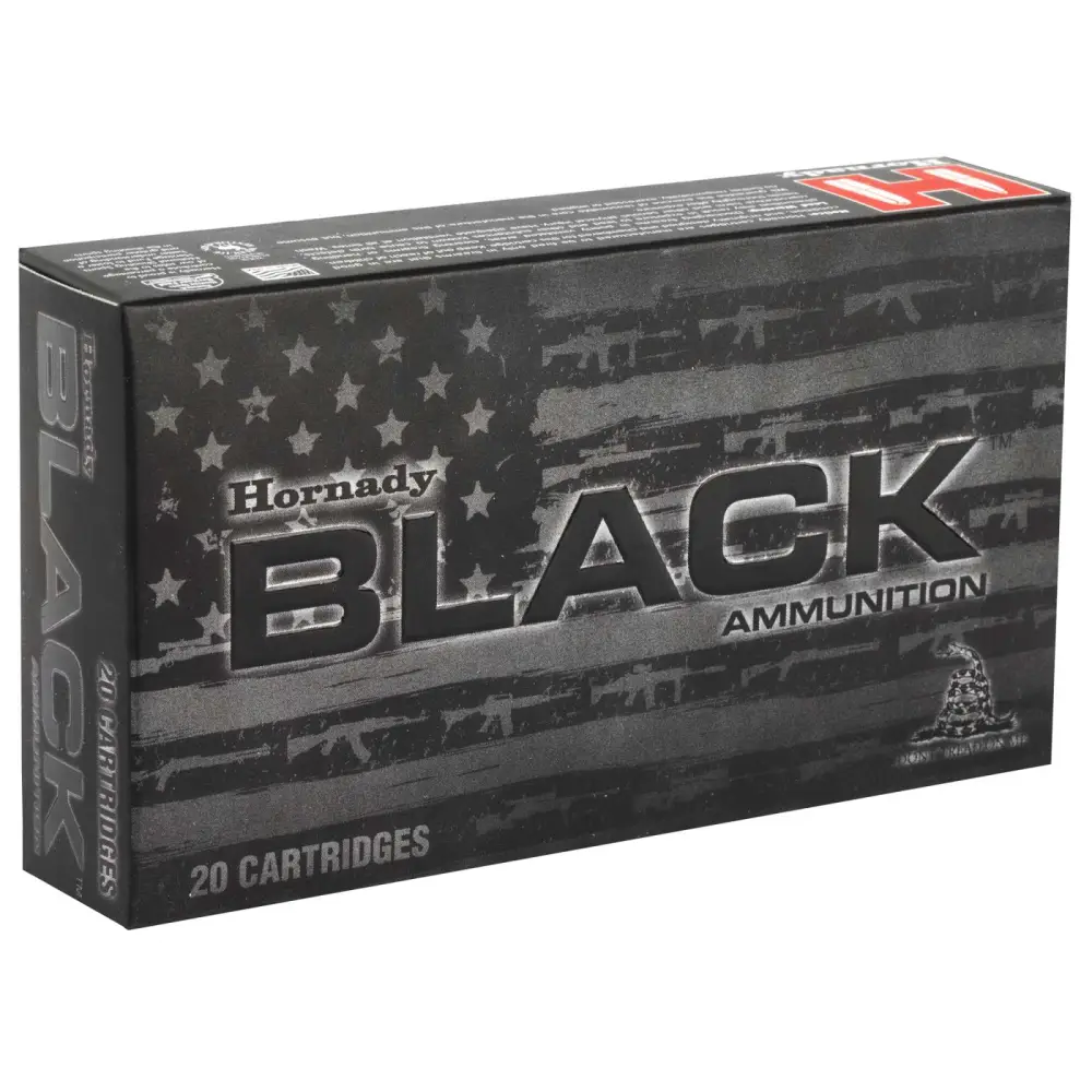 Hornady Black ammunition features versatile loads optimized for excellent performance from America's favorite guns. Loaded with legendary Hornady bullets, Hornady Black ammunition is designed to fit, feed and function in a variety of platforms. Direct impingement, gas piston, suppressed, unsuppressed, inertia, bolt, pump, supersonic, subsonic, rifle, mid-length, carbine or pistol Hornady Black ammunition delivers superior performance for a variety of applications.