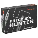 Accuracy and terminal performance are the cornerstones of Hornady Precision Hunter factory loaded ammunition. These match-accurate hunting loads allow the ELD-X bullet to achieve its maximum ballistic potential. Propellants used in this line are clean burning and loaded to uniform capacity for consistent shot to shot results regardless of temperature. The ELD-X Heat Shield tip defies the effects of aerodynamic heating and retains its shape to maintain the highest in-class BC over its entire trajectory.