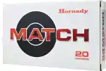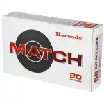 Hornady's Match ammunition features extremely tight tolerances and strict quality control for superior lot-to-lot consistency. Cases are carefully selected based on wall thickness uniformity, internal capacity, case weight and consistent wall concentrically, while the powder is matched carefully to each specific load for optimal pressure, velocity and consistent accuracy.