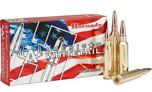 Opening day of deer season comes only once a year. Make sure you're ready when the big one steps out and load-up with Hornady American Whitetail ammunition. The InterLock bullet features exposed lead tips for controlled expansion and hard-hitting terminal performance. Its pioneering secant ogive design and exclusive InterLock ring helps keep the core and jacket locked together during expansion to retain mass and energy. The American Whitetail utilizes the highest quality cases and primers available for optimum pressure and consistency.