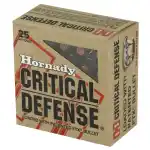 Hornady's Critical Defense ammunition is loaded in nickel-plated cases for increased visibility in low-light situations. Premium low flash propellants deliver proven performance, even in very short-barreled handguns, and won't disrupt your vision. Reliable expansion and dependable terminal performance can be counted on for concealed carry and personal protection. The Critical Defense Lite ammunition offers an effective, reduced recoil option for any shooter looking to minimize felt recoil of their lightweight, compact personal protection firearm. The patented FTX bullet expands reliably and resists clogging when fired through heavy clothing and utilizes Flex Tip technology which eliminates the clogging and inconsistency.
