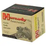 Handgun shooters looking for supreme accuracy and maximum knock down power have come to rely on Hornady Custom pistol ammo. The brass is selected to ensure it meets unusually high standards for reliable feeding, corrosion resistance, proper hardness and the ability to withstand maximum chamber pressures. Powders in each cartridge are loaded to ensure optimal pressure, velocity and consistency from lot to lot.
