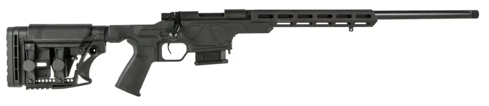 The MiniAction Chassis model merges the unique Howa MiniAction system with the flexibility of an aluminum alloy billet chassis. The Accurate-Mag chassis is compatible with AR-style furniture and M-Lok accessories. Its fully adjustable LUTH-AR MBA-3 stock has adjustable length of pull, and an adjustable comb height. The stock is mounted on an AR-style buffer tube system, and features an Ergo Grip.
