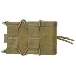 This pouch uses injection molded polymer sides, Cordura front and back and shock cord lacing to lock just about any rifle magazine into place. USGI, HK, PMAG, ARC, FAL, AK 30//40, LR20 and M14 magazines are all held securely and deployed easily and silently on demand. The TACO even works for certain radios, flash bangs and smoke grenades and provides this versatility while taking up only 3" horizontal inches on your platform. The TACO maintains a positive, adjustable grip on its contents without additional securing systems. However, if additional retention is desired webbing tabs are sewn in on the top for use of "over the top" bungee retainers and loop Velcro is sewn on the interior if the users wishes to use adhesive hook on the magazine.