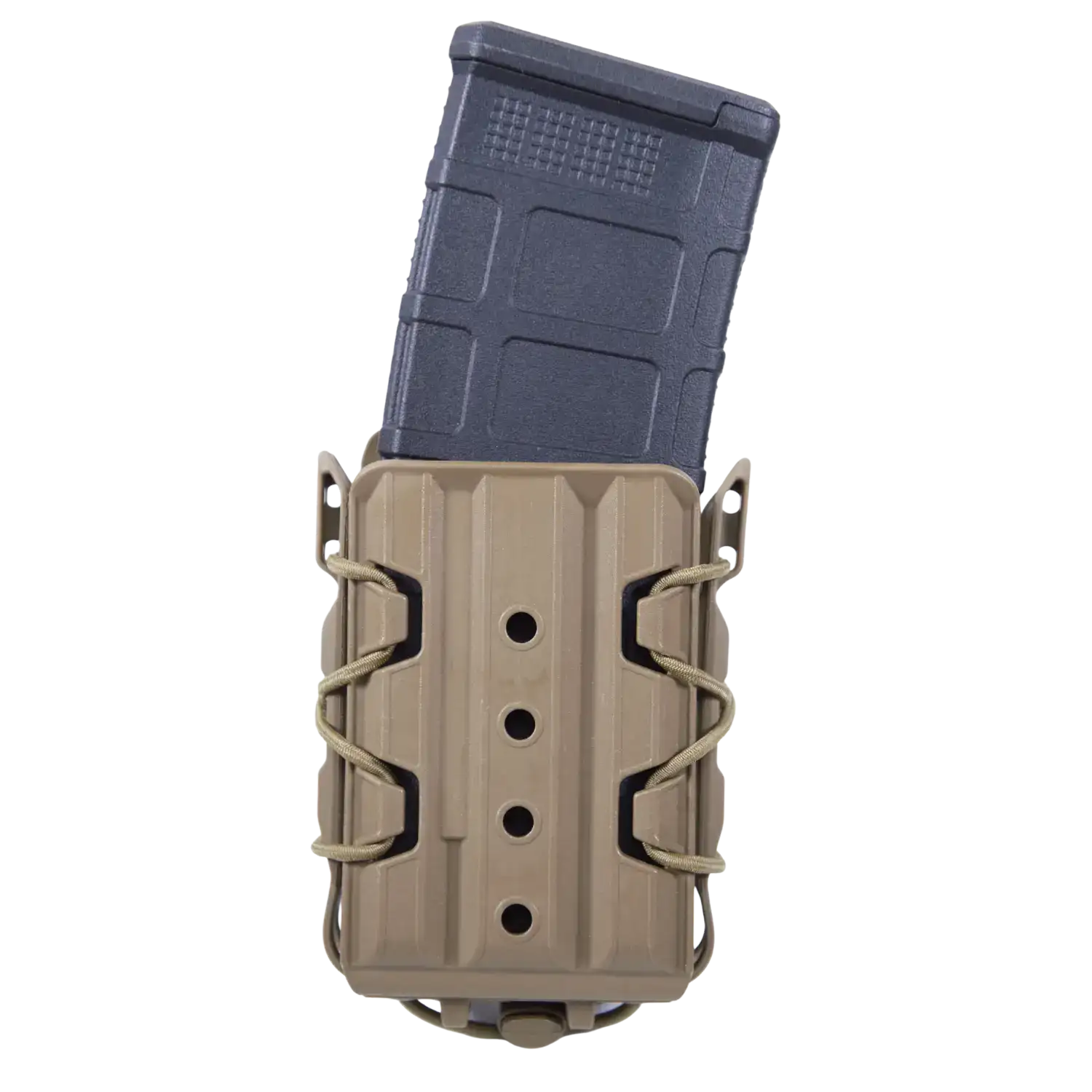 High-Speed Gear's line of polymer TACOs functions much the same as their nylon counterparts. The body and brackets are made with our durable and flexible, proprietary polymer and are laced together with bungee cord for the same versatility our customers have come to expect from the TACO brand. As with the originals, these pouches grip and retain a wide variety of magazine styles and calibers.
