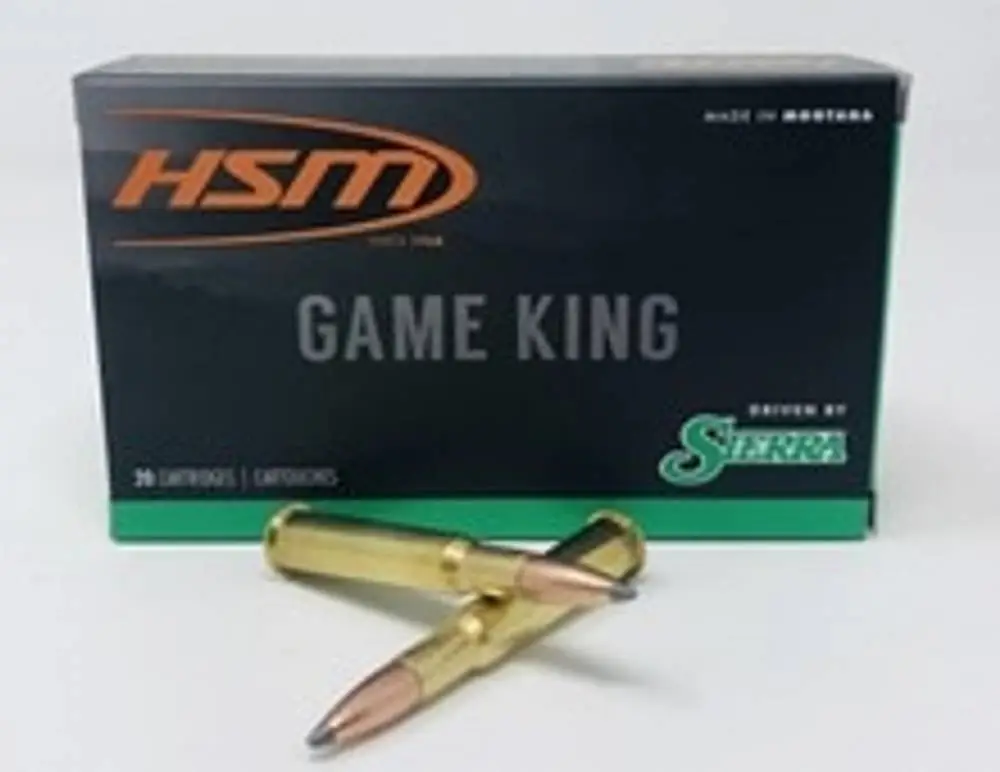 Sierra "Game King" bullets have earned superlative accolades for years and years. Now HSM has developed an entire lineup of fine hunting ammunition featuring the time-honored Sierra GameKing/Pro-Hunter bullets. Each caliber's individual components have been precisely matched to each GameKing/Pro-Hunter bullet to maximize their potential for accuracy and performance.