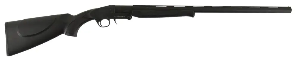This I.O SB 12 gauge shotgun features a black synthetic stock, 28" barrel with vent rib, and fixed choke tube.