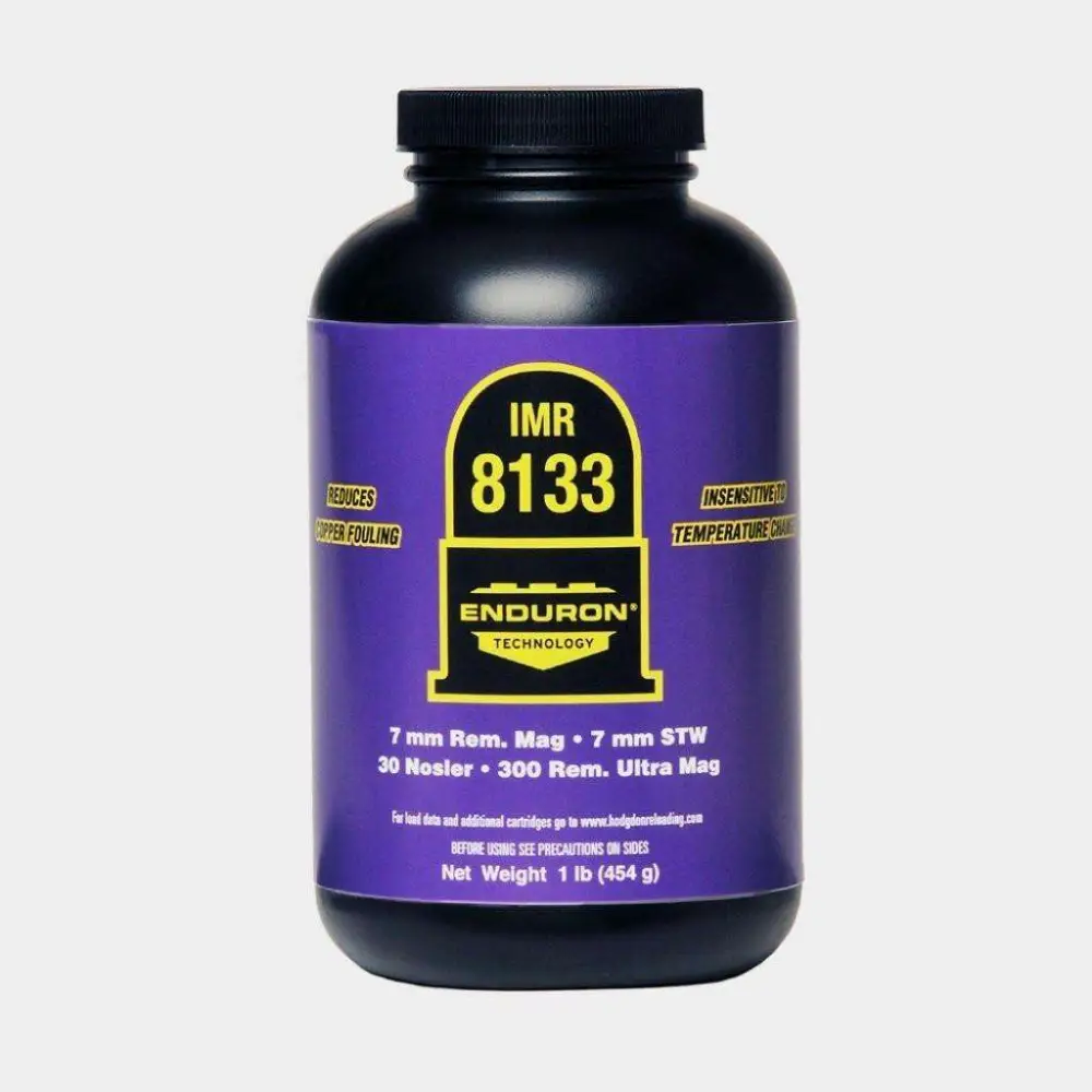 IMR Enduron 8133 is the slowest burn rate in the Enduron family. Loading density is perfect for magnums, contributing to superb uniformity. This is a true magnum propellant yielding outstanding performance in 6.5-300 Weatherby, 264 Win Mag, 28 Nosler and 300 Rem Ultra Mag, among other cartridges. Loading density is perfect for magnums, nicely filling the case at maximum charges, contributing to superb uniformity and accuracy.