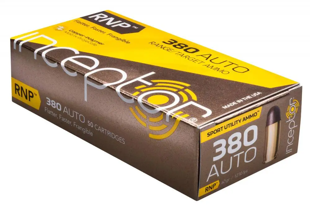This 380ACP ammo features Round Nose Precision (RNP) projectiles.