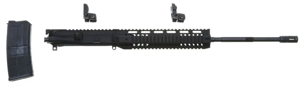The 410 ARU upper allows any AR15 to be converted to a 410 shotgun. It features an 410 gauge 18.5" barrel chambered in 2.5", an A2 style carry handle with rear sight, and is supplied with a five round polymer magazine.