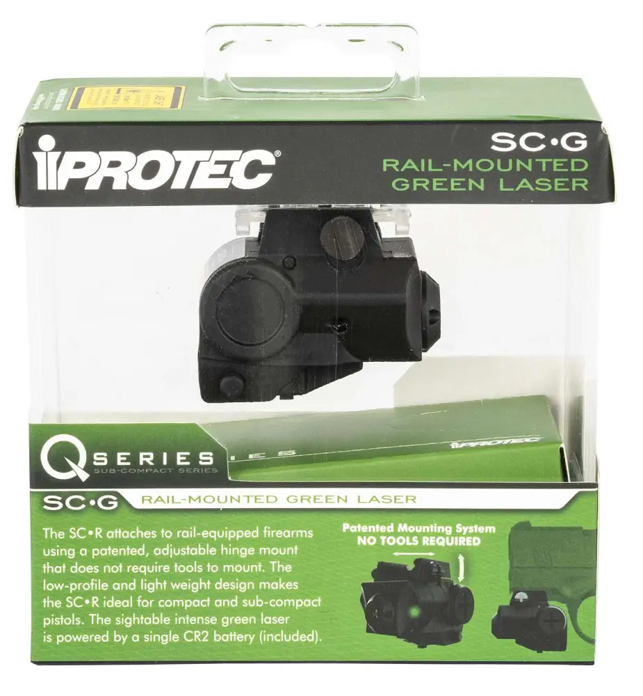 The SC-G uses a 5-milliwatt, 532 nanometer green laser to sight up to 457 meters away. The laser is controlled by two side-positioned ON/OFF buttons for left and right-handed use. Ideal for rail-equipped compact and subcompact pistols. It has an adjustable hinge mount design; no tools required. Ideal for rail-equipped compact and subcompact pistols. It is made from heavy-duty fiber reinforced nylon, and is water and impact-resistant.