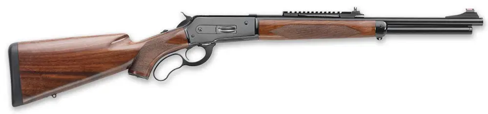 The solidity and the ease of embracing typical of lever models combined with a small-sized barrel and a cal. .444 marlin, capable of developing average commercial pressure of 3550 bar, make this weapon the winning choice when hunting in the thick. In addition, the ballistic precision dictated by the barrel (PMG) of Pedersoli production, with 12 groove grooves obtained by broaching combined with the speed and stopping power of the cartridges on the market (700 m / s with 240 grs ball) make it suitable hunting for any European animal and most American animals up to a distance of about 200 m. Prepared for the installation of a special line with integrated optical fiber sight notch which, if required, allows the rapid assembly of a modern red dot or long focal lens.