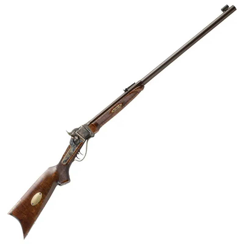 The Sharps 1874 Old West Walnut model is inspired by a specimen set up by Henry Slotterbeck, a Wrttemberg-based weaponry who emigrated to the USA in the 1850s who, after working for several years at Henry Deringer in Philadelphia, founded Slotter & Co. The stock has brass details: on the right side of the blade a plate to be customized with some inscriptions, and on the rod the plates to protect the buttonhole that houses the transverse key for fixing to the barrel. The pistol grip is completed by a steel bowl with a turtle-colored finish.