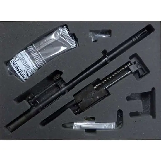 The 300 AAC Blackout caliber conversion kit includes: Tavor X95 300 Blackout 16.5" cold hammer forged, CrMoV, chrome-lined barrel with a 1:8" twist; A2 flash suppressor; recoil mechanism; full-length, flattop Picatinny rail with gas regulator; deflector frame (for conversion from 9mm); Tavor barrel wrench; one black 30-round Magpul PMAG Gen M3 with window; right hand bolt.