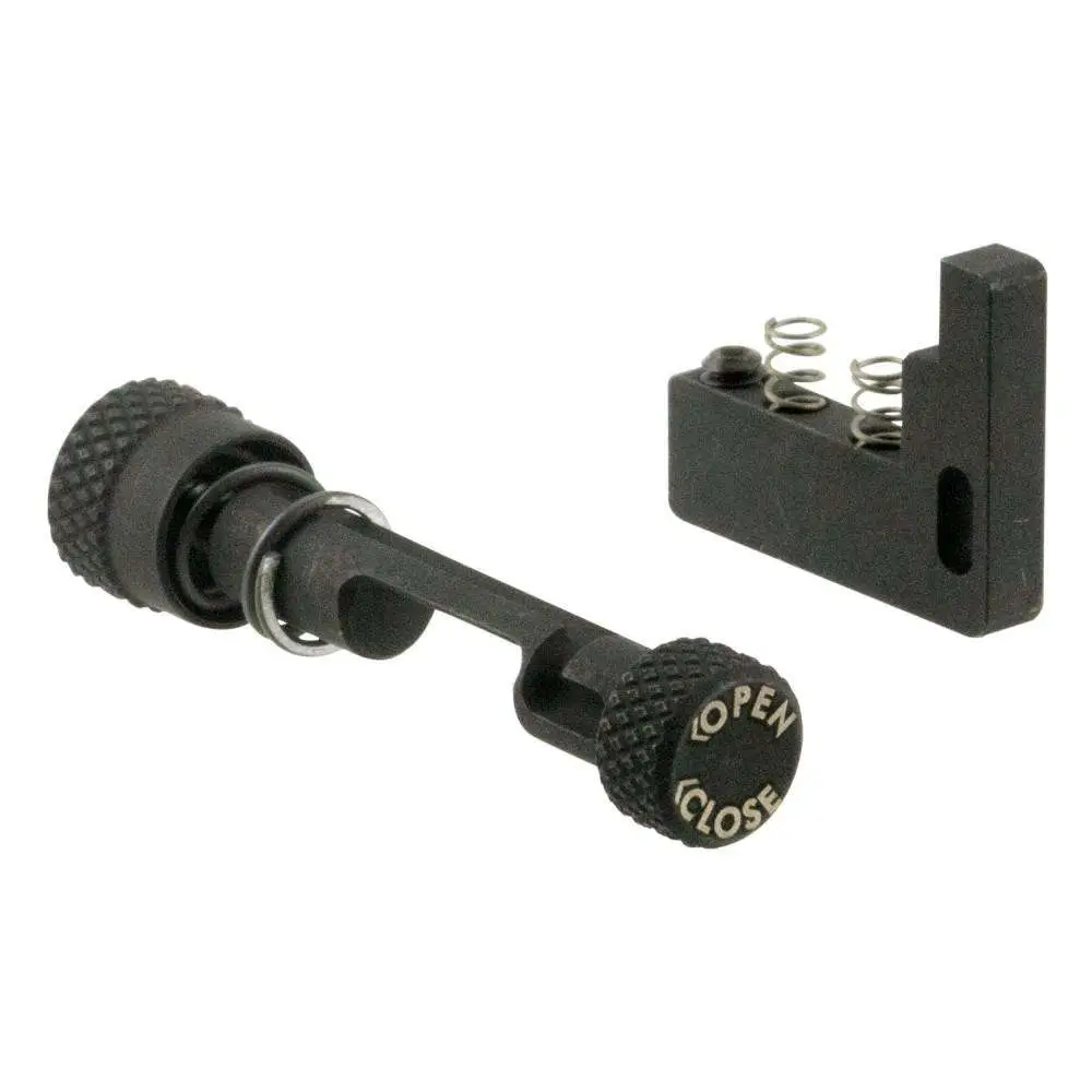 The Hellfighter Mod Kit it the perfect, ultra-fast California Compliant magazine lock solution for your AR-10 or AR-15. Juggernaut's modified quick-release take down pin, acts as a button to separate the upper from the lower just enough to disengage semi-automatic operation and automatically disable the magazine lock. Once your upper is separated and disengaged from semi-automatic operation, your magazine release is now operable. A simple tap closes the upper and re-engages the spring loaded take down pin and will quickly get you back in the fight. It allows you to keep all of your current features, including a pistol grip, a forward grip, and adjustable butt stock. You can even reinstall a mil-spec magazine release. This model has a black finish and is compatible with your AR-15.