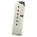This stainless steel magazine with grip extension, fits Kahr P380 and CW380 models.