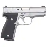 The Kahr K9 9mm is among the leaders of the new breed of mini-9s that have taken both the law enforcement and civilian concealed carry market by storm. This semi-automatic 9mm pistol has an OAL of 6 inches, a height of 4.5" and a slide width of .9 inches, specifications that make the K9 highly concealable. The K9 is also a reasonably lightweight gun, weighing 25 ounces, with a respectable maximum capacity of 7+1.