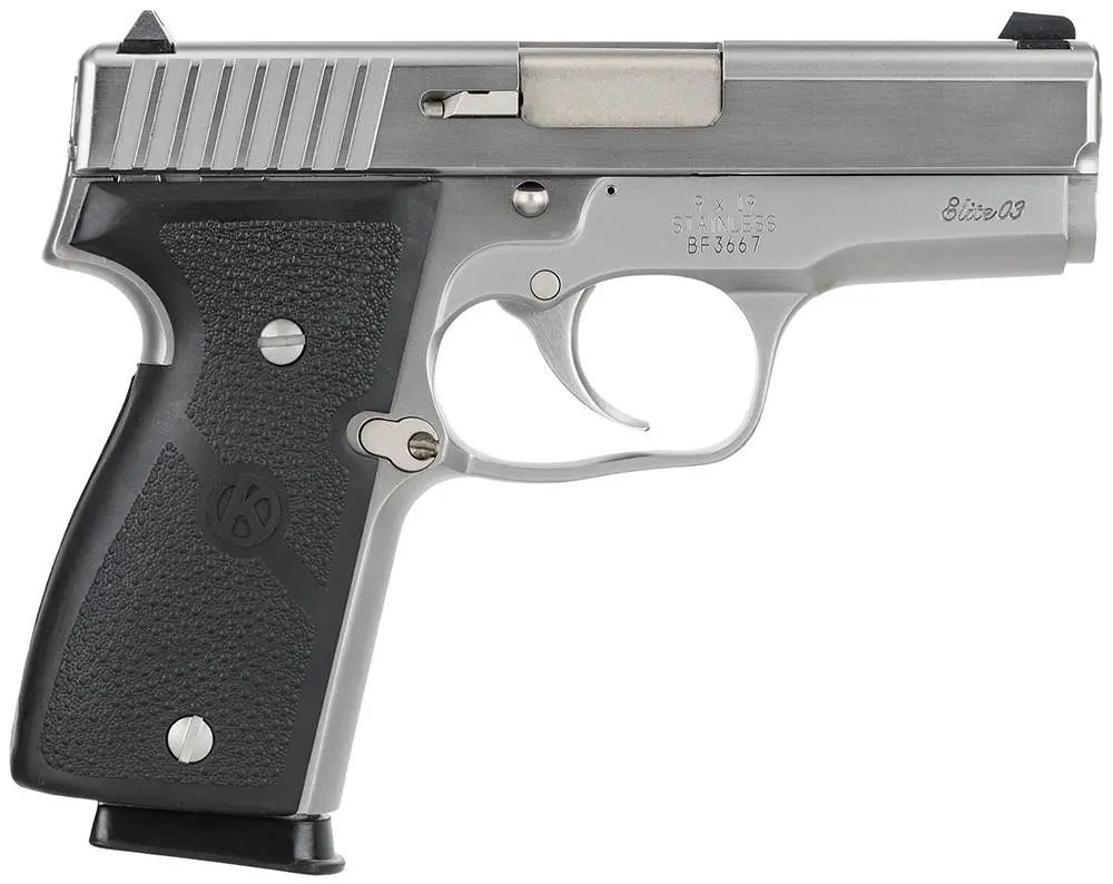 The polished stainless steel finish and laser etching on the frame are available on all Kahr Elite 2003 pistols: the K9, MK9, K40 and the MK40. The lustrous finish complements the innovative designs and solid construction. The magazine well is beveled for easier magazine reloading. The feed ramp on the barrel is polished to a high luster to insure reliable feeding with all types of ammo. Laser engraving on the frame provides the finishing touch to the polished stainless steel - for an appearance as impressive as its capabilities.