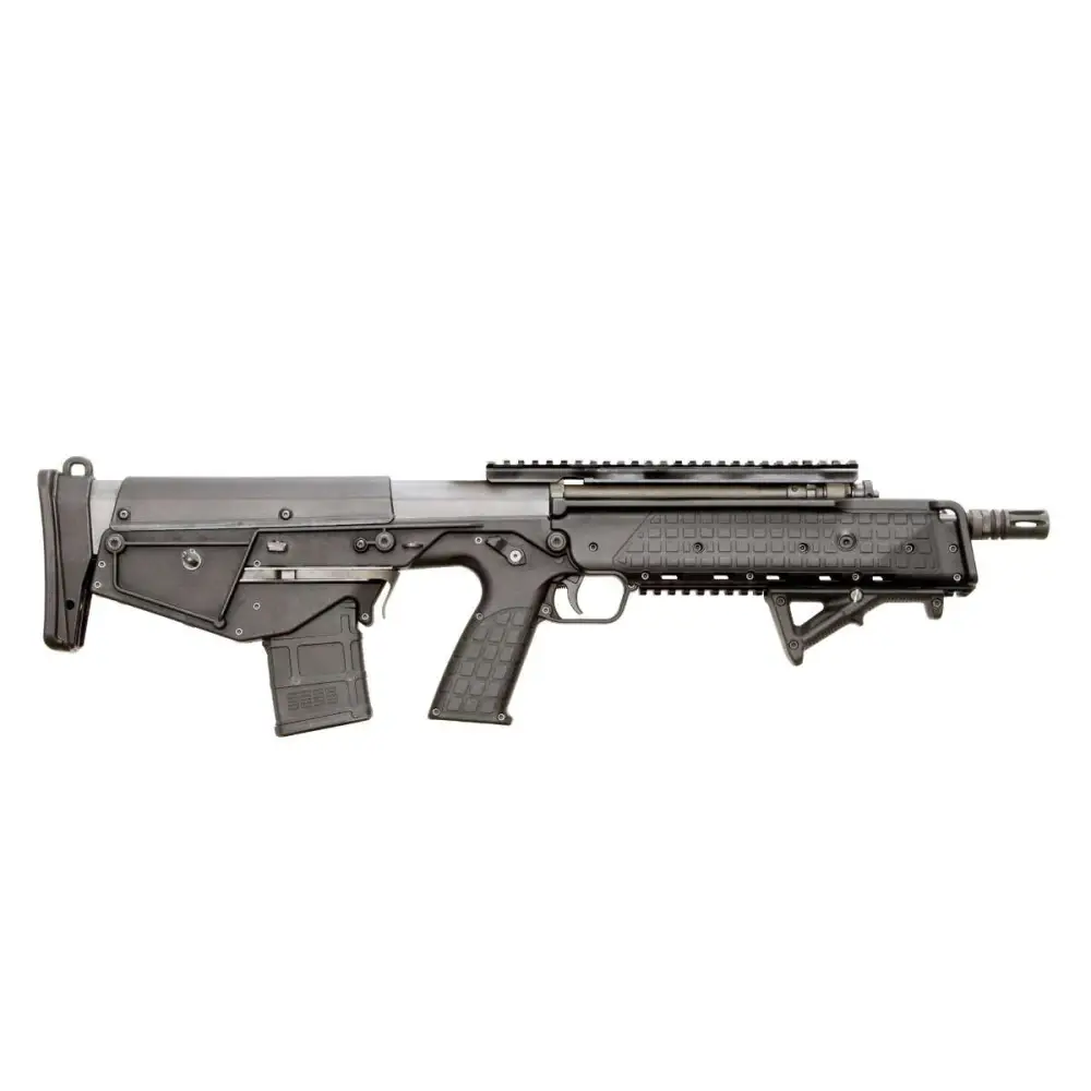 Kel-Tec's RDB bullpup design provides a compact, well-balanced rifle featuring a revolutionary downwards ejection and fully ambidextrous controls, enabling it to be fired from both the dominant and non-dominant side. The result is casings eject out of your line of sight for a truly ambidextrous, high performance rifle. The RDB maintains a center of gravity over the grip assembly to facilitate ease of handling and balance. It comes equipped with two integral MIL-STD-1913 Picatinny rails, located above the barrel and on the handguard for mounting accessories and multiple sling attachment points compatible with a hook-style swivel. It is compatible with AR-15 style magazines. This RDB model has a 17.3" barrel and a black finish. It includes a 20-round magazine. NOTE: Scope is not included.