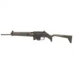 The SU-16A is a gas operated, semi-auto loading rifle chambered in 5.56 mm NATO caliber. It is intended to be the perfect everyman's sport and utility rifle. It has a 1:9" RH twist. Several features make the SU-16 a versatile sporting firearm, including a chrome-lined bore and chamber and integrated Picatinny rail for mounting different sight systems. The forend folds down to form a bipod for increased accuracy, the stock can store spare magazines, two 10-round magazines or one 20/30 round magazine will fit and the stock and trigger mechanism can be folded forward for added safety and to facilitate secure storage or carry under extreme conditions. Except for barrel and operating components, the SU-16 is made entirely of high impact reinforced polymer. The SU-16B "Bravo" model retains all the features of the original SU-16, such as integrated bipod, Picatinny rail, and rotating stock with magazine storage. The "Bravo" model has a lighter and shorter barrel (by about 8 oz. and 2.3"), but still has a chrome-lined bore and chamber. The SU-16C "Charlie" model retains most features of the original SU-16, such as integrated bipod, Picatinny rail, and AR-15/M-16 magazine compatibility. The front sight is integrated into the gas block and uses an AR-15/M-16 style front sight post for elevation adjustments. The SU-16C has a true folding stock and can be fired with the stock folded. A reciprocating dust cover and a case deflecting operating handle are also integrated into the rifle. The medium weight barrel is 16" long and is threaded 1/2x28 TPI at the muzzle. It has a chrome-lined bore and chamber. The "Charlie" has a Parkerized finish with black polymer components. The SU-16CA is a hybrid of the SU-16C and SU-16A rifles. It comes with the same 16-inch barrel with chrome-lined bore and chamber and 1/2-28 threads as the C model. All features from the C model are retained and combined with the stock of the A model. The SU-16CA comes with two 10-round magazines that store in the stock and all the same Parkerized parts as the C model. Like the A model, the SU-16CA can be folded for storage, and it will not fire in the folded position. This allows for it to be purchased in most states that still have an "Assault Weapons Ban."