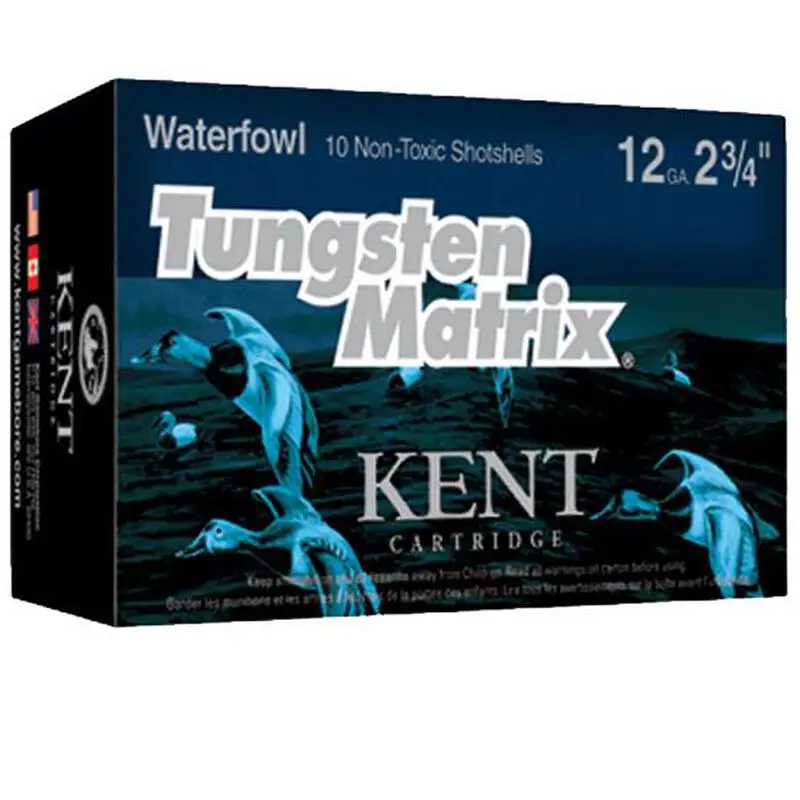 Kent's Tungsten Matrix rounds have 40% greater density than steel, and are a non-toxic alternative to lead that won't harm barrels and is safe in any choke. Uniform pellet size and consistent density allow for maximum on-target energy. Tungsten Matrix Waterfowl loads feature a patented blend of pure Tungsten powder and polymer binding, designed to match the physical and ballistic properties of lead.