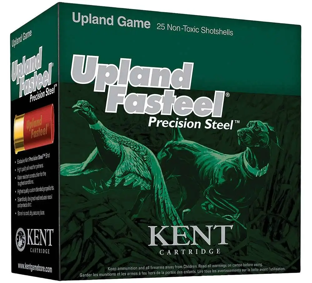 Kent's Upland shotshells outperform whether hunting the open plains of the United States, in Europe or Britain, whether the birds are pheasant, chukkar, bobwhites, grouse or woodcock. Upland hunting is a demanding and challenging experience, but with hard hitting Upland Fasteel, a day in the field means a bird in the hand. Upland Fasteel is available for small birds and pheasant shooting in both 12 and 20 gauge.