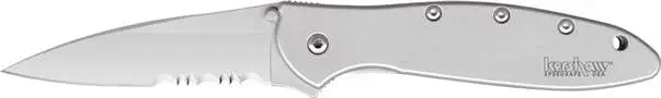 Kershaw 1660ST Leek 3" Drop Point Part Serrated Bead Blasted 14C28N Sandvik 410 Stainless Blead Blasted Handle Folding