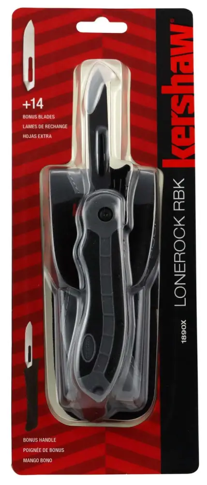 Like the rest of the LoneRock series, the LoneRock RBK features a comfortable handle of glass-filled nylon overlaid with Kershaw's exclusive K-Texture grip. A locking liner secures the blade open during use. The RBK comes with 15 blades so hunters don't have to purchase replacements as quickly. Even better, the RBK also comes with a buddy handle. It's a slim, extra handle that holds an RBK blade so that both you and your buddy can take on the skinning task and get the job done quicker. The LoneRock RBK comes with a nylon sheath that holds the RBK, 14 replacement blades and the extra handle.