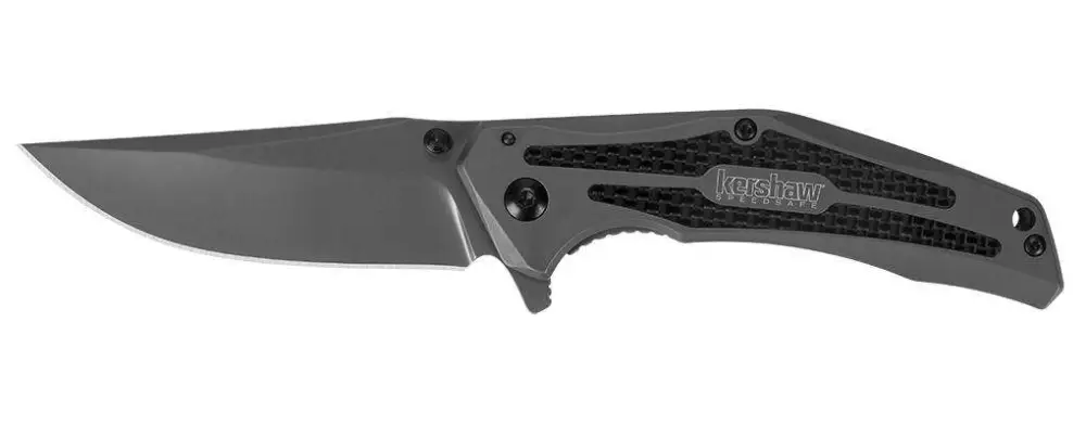 The Kershaw DuoJet has a wide clip-point blade of quality 8Cr13MoV stainless steel with gray titanium carbo-nitride coating. The durable coating provides an extra measure of corrosion protection. The steel handle has matching gray titanium carbo-nitride coating and dual carbon fiber inserts. It locks safely open during use thanks to a sturdy frame lock.The DuoJet opens quickly and easily with SpeedSafe assisted opening using either the built-in flipper or the thumb stud. The knife's hardware is black to match the carbon fiber, including the single-position deep-carry pocketclip. The DuoJet also includes a lanyard hole so you can customize it with your favorite paracord lanyard.