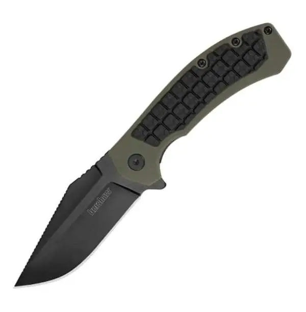 Everything about the Faultline says practical, reliable and sturdy. This right-sized knife fits comfortably in the hand but offers a bigger blade than you might expect. The broad blade provides efficient slicing while the clipped point delivers good piercing capability. Made of 8Cr13MoV stainless steel, the Faultline's blade is black-oxide coated for a tactical look while adding an extra layer of corrosion protection. Heavy jimping on the blade back adds additional grip. The handle is olive drab glass-filled nylon with a rubberized, super-grippy and textured overmold. Kershaw adds an inset liner lock, which provides the blade-lockup security of a locking liner with less bulk and at a lighter weight. The knife opens with a flipper and with their KVT ball-bearing opening system. A single-position, deep-carry pocketclip ensures the knife rides securely inside your pocket.