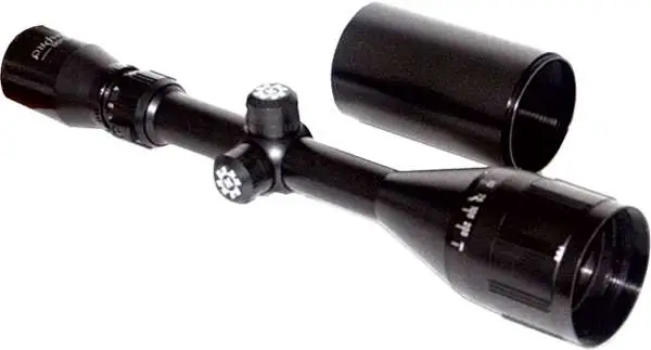 This 3-12x50mm AO has a 30/30 engraved reticle and a matte black finish. It includes a 4" sunshade, screw-on metal lens covers, and a lens cleaning cloth.
