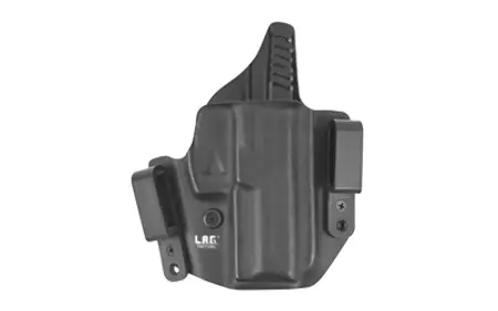 L.A.G. Tactical custom Kydex holster is designed to meet each individual shooter's preference. The holster is extremely comfortable and designed to keep the gun close to the body, making it easy to conceal carry mid to full size gun in a t-shirt without printing. All of Kydex holsters come standard with both IWB and OWB (inside and outside the waistband) belt loops. This allows you to go from concealed to open carry in minutes with one holster. The Defender features easily adjustable retention and is designed to be so comfortable and lightweight. The easily interchangeable belt loops take you seamlessly from your outside the waistband range set up, to your highly concealable inside the waistband daily carry in no time at all. This model is compatible with Springfield XDS 3.3".