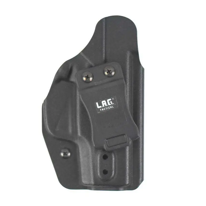 L.A.G. Liberator Mk II kydex holster is designed to meet each individual shooter's preference. The holster is extremely comfortable and is designed to keep the gun close to the body, making it easy to conceal carry mid to full size guns. Its key features, include an ambidextrous design, adjustable retention and the user can adjust the cant anywhere from -15 to +15. Comes standard with both IWB and OWB (inside and outside the waistband) belt loops, that allows you to go from concealed to open carry in minutes with one holster. It allows multiple different types of attachments, from LAG's standard 1.75" hard clip to Ulticlips and Soft Loops and other common aftermarket attachments. This model is compatible with Glock 43.