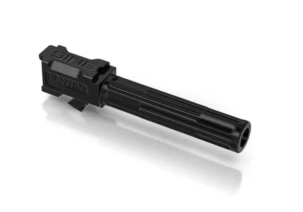 LanTac 9INE Professional upgrade drop in barrel is match grade and precision machined from 416R stainless steel. It also has 6 grooves, is cut rifled, and has a 1:10 twist rate. The barrel is also bead blasted to create a satin finish prior to plating.