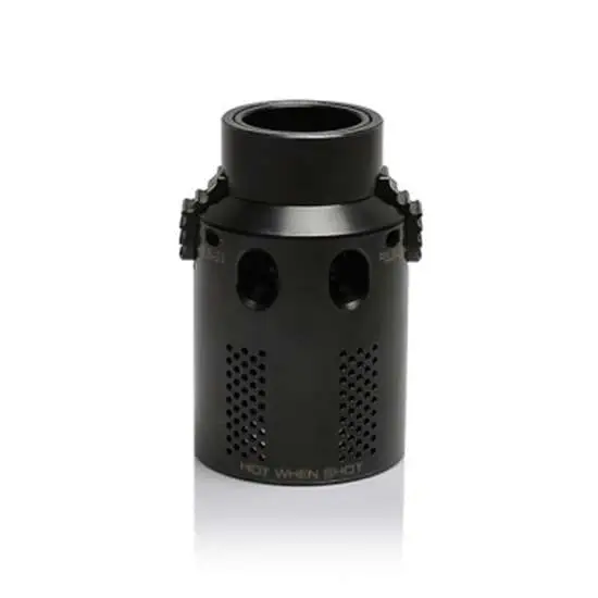 The BMD, (Blast Mitigation Device) is a unique blast shield that allows the muzzle brake contained inside it to continue to function as normal with regard to muzzle climb mitigation.