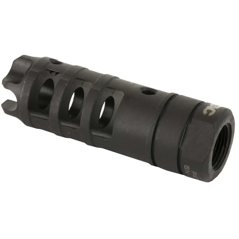 The LANTAC DGN9MMC Muzzle Brake offers improved recoil management and muzzle rise over competitors products. Its unique short energy Pulse system reduces length of recoil so that repeating shot energy cannot overlap and knock the shooter off target.Full auto fire is possible with massively reduced recoil and muzzle climb, meaning that all shots fall on target. Ultra fast attenuation of muzzle blast gasses means that Flash Signature is also reduced.