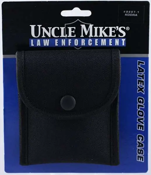Convenient belt pouch holds two pair of thin or one pair of thick latex gloves in single compartment. Thin laminate of Cordura nylon, 1/8" waterproof closed-cell foam padding and smooth nylon lining that won't snag gloves. Flap has snap closure with no-glare, no-wear snaps. Fits belts up to 2 1/4".