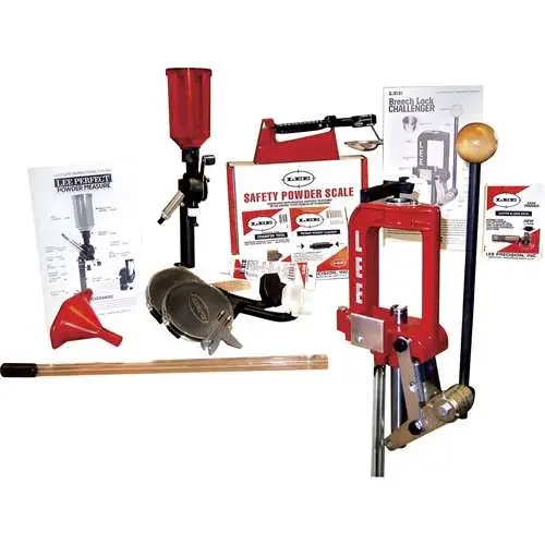 Includes the Breech Lock Challenger Press and three Breech Lock quick change bushings. You get a complete powder handling system, with the most convenient and repeatable perfect powder measure. Plus the Lee safety scale, the most sensitive and safest of all powder scales and fill your case with the included powder funnel. Case preparation tools include a cutter and lock stud to trim your cases. An included Lee chamfer tool chamfers the inside and outside of the case mouth and a tube of premium sizing lube is included. A small and large primer pocket cleaning tool completes the case preparation package.