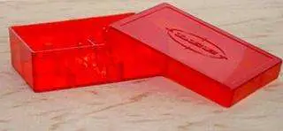 Lee's Red Flat 2-Die Box, the ideal storage for your dies. It is a flat box made of durable red plastic, and holds two dies.