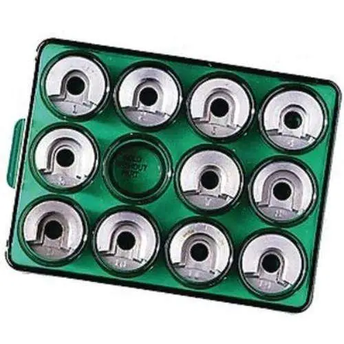 Lee's Set of Universal shell holders includes 11 of the most popular shell holders for more than 115 different cartridges. Includes #1, 2, 3, 4, 5, 7, 8, 9, 10, 11, and 19. The Universal Shell Holder set comes with a box for storage.