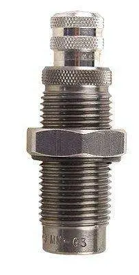 Lee's Carbide Factory Crimp Die sizes the cartridge while being crimped so every round will positively chamber freely with factory like dependability. This die applies a roll style crimp. The adjusting screw quickly and easily sets the desired amount of crimp. Trim Length is not critical so this extra operation takes less time than it would if cases were trimmed and chamfered. A firm crimp is essential for dependable and accurate ammunition, as it eliminates the problems of poor ignition of slow burning magnum powders.