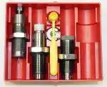 Lee's PaceSetter 3-Die Set includes a Full Length Sizing Die, Easy Adjust Dead Length Bullet Seating Die, Factory Crimp Die, Universal Shell Holder, Powder Dipper and instructions/load data.