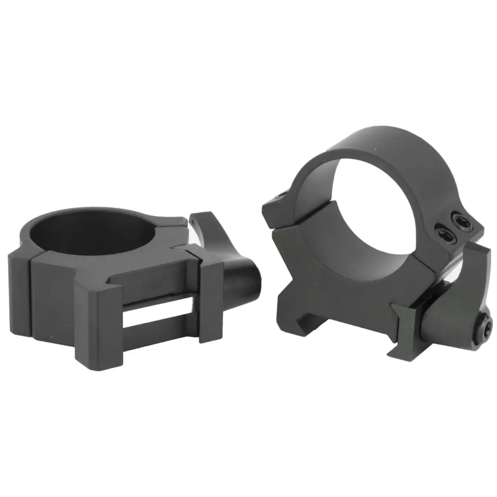 The quick release, weaver style ring mounts features a durable steel construction and a black matte finish. This model has a medium ring height and a 1" ring diameter.