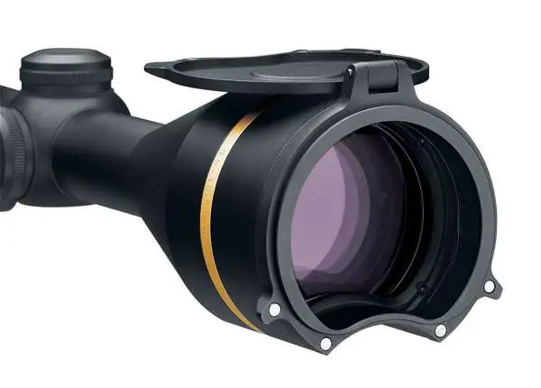 Leupold's 2 piece kit-eye and objective lens cover. The cover opens silently and folds flat against the scope in the open position. Constructed out of durable 6061-T6 aircraft grade aluminum, they are precisely machined to allow for quick and easy operation, and a low-profile position, when open, make these Flip-Back lens covers stand above the rest. The round objective and ocular models can be rotated so they can open in any direction. It fits 50mm.