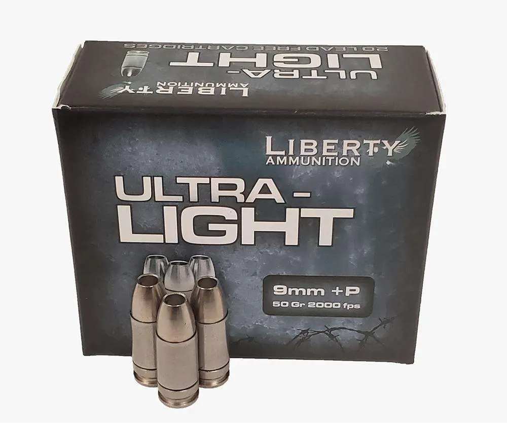 Liberty Ammunition LAUL9052 Ultra-Light 9mm Luger +P 50 gr Copper Hollow Point 20 Bx/ 10 Cs