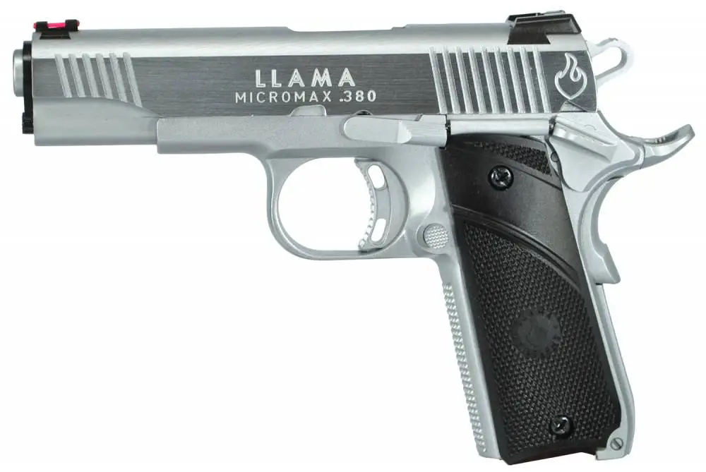 Llama took the classic 1911 and shrunk it down to make it easier to conceal. But despite its size, it still functions and performs like a full size with a rear sight and a true beavertail grip safety. It has a flared and lowered ejection port to eliminate hangups; rear slide serrations for better grip; throated, forged steel barrel with a nitride coating for added durability; and a standard slide stop for added safety. The Micromax has a skeletal combat hammer, combat trigger and serrated front strap for sleek aesthetics.