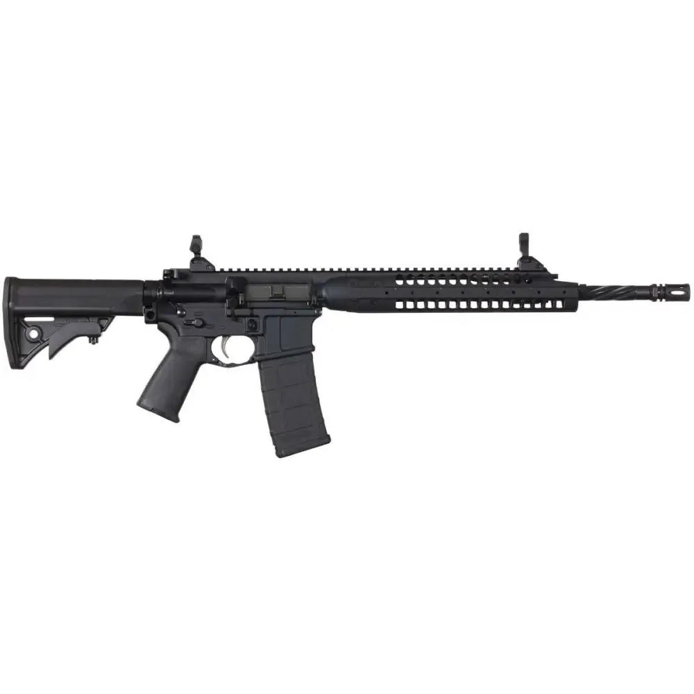LWRC's IC-A5 is built for high performance and is constructed using the highest quality materials. It is designed with a low profile, 2-position adjustable gas block allowing the shooter to compensate for running a suppressor with the added benefit of a longer modular rail system. The upper rail section is a special cutback version, which allows the use of the low profile gas block and at the same time keep the full 12" modular rails available on the sides and bottom of the hand guards. Its dual control fully ambidextrous lower receiver includes bolt catch and release, magazine release and fire control access from both sides. The cold hammer-forged barrel is NiCorr treated and spiral fluted, while the Nickel-boron coated bolt carrier delivers unparalleled wear resistance, corrosion resistance and permanent lubricity. The IC-A5 comes complete with, LWRCI Skirmish back-up iron sights, an ambidextrous charging handle, LWRCI adjustable compact stock, a Magpul MOE+ grip, and A2 Birdcage flash hider. This model has a 16.1" barrel and a black metal finish.