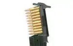 This model is compatible with Ruger Mini-14 metal, polymer, stripper-clips, and magazines.